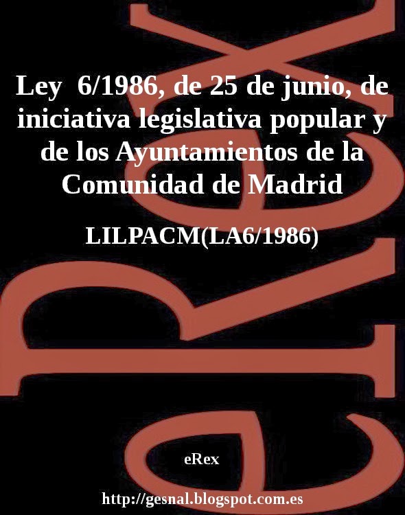Aprobada por la Asamblea de Madrid, la Ley 6/1986, de 25 de junio, publicada en el «Boletín Oficial de la Comunidad de Madrid» número 161, de fecha 9 de julio de 1986, se inserta a continuación el texto correspondiente.
